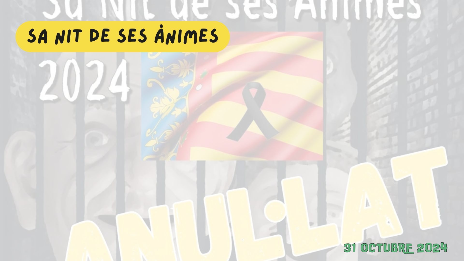 Enguany i en Solidaritat amb el Poble Valencià i sumant-nos als tres dies de dol decretats per l´estat , es va cancel.lar i d´acord amb el nostre ajuntament, l´activitat programada per la colla gegantera amb motiu de SA NIT DE SES ANIMES, prevista per l´horabaixa-vespre del dia 31 d´Octubre amb motiu de la festa de TOTS SANTS.